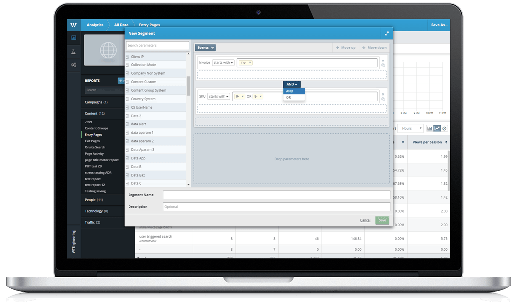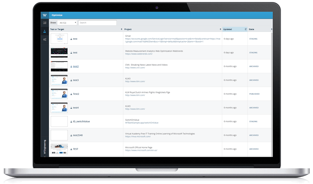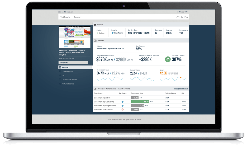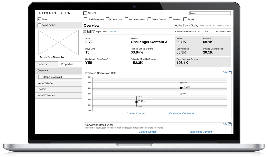 The project unified seven disparate products into a unified UX. The visual design I created for Webtrends Optimize (below) was the model for the final unified design language.