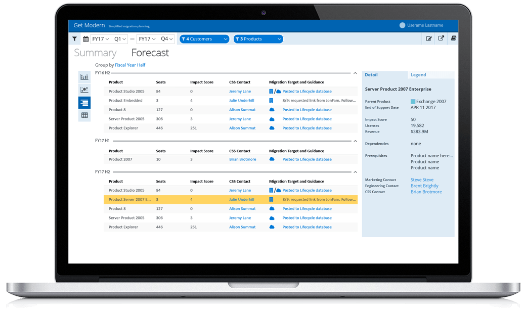 Designed a product to surface the cost and risk involved with software product support expiration. At Microsoft, products reach end-of-life after ten years. In many cases, tens of millions of users depend on dead software, which carries a high maintenance cost to Microsoft and to their customers.
