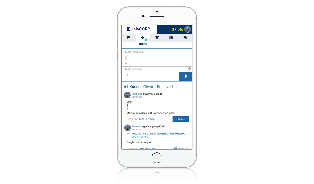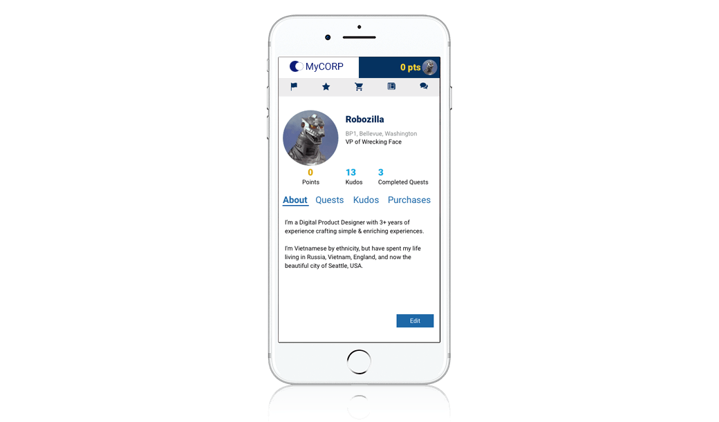 Designed an "MVP" employee engagement web app experience intended to grow culture and community within a company. The project was nearing a 90-day delivery deadline when I was tasked with rescuing the misguided product UX. After redesigning the entire UI for mobile inside 24 hours, I then lead the dev team as Scrum Master to complete the work on time, in just six days.