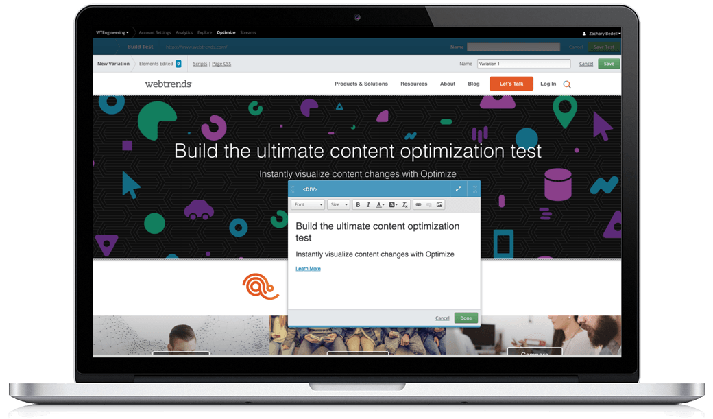 Designed an on-page, in-situ content testing tool to allow non-technical marketers to produce A/B/N tests without need of a web developer or coding experience. Optimize Visual Editor was the final generation of the product I designed at the start-up Widemile which was acquired by Webtrends in 2009.